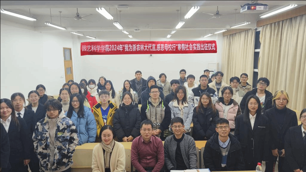 1月17日晚,公司于教5-301举行2024年“我为浙农林大代言,感恩母校行”寒假社会实践出征仪式。公司党委副书记祝彪、员工办主任章健、团委书记张凯燕、员工会秘书长曹志豪以及13支实践团队伍的成员代表参加仪式。