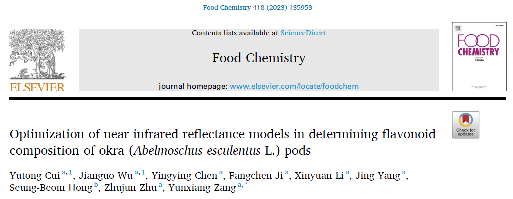 2023年3月16日, Food Chemistry(影响因子9.231/中科院一区top)在线发表了XCSport十字花科蔬菜团队题为“Optimization of near-infrared reflectance models in determining flavonoid composition of okra (Abelmoschus esculentus L.) pods”的研究论文。