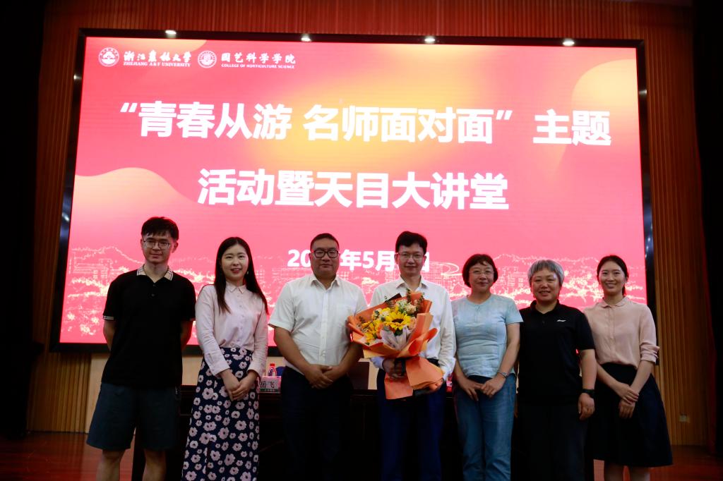 5月5日下午,浙江大学求是特聘学者、茶学学科带头人、茶叶研究所所长王岳飞教授做客公司“青春从游 名师面对面”主题活动暨天目大讲堂,为师生们作《新时代茶产业发展与乡村振兴》的精彩报告。公司党委宣传部、校团委、茶公司、园艺公司等主办和承办单位负责人,以及师生500余人参加活动。
