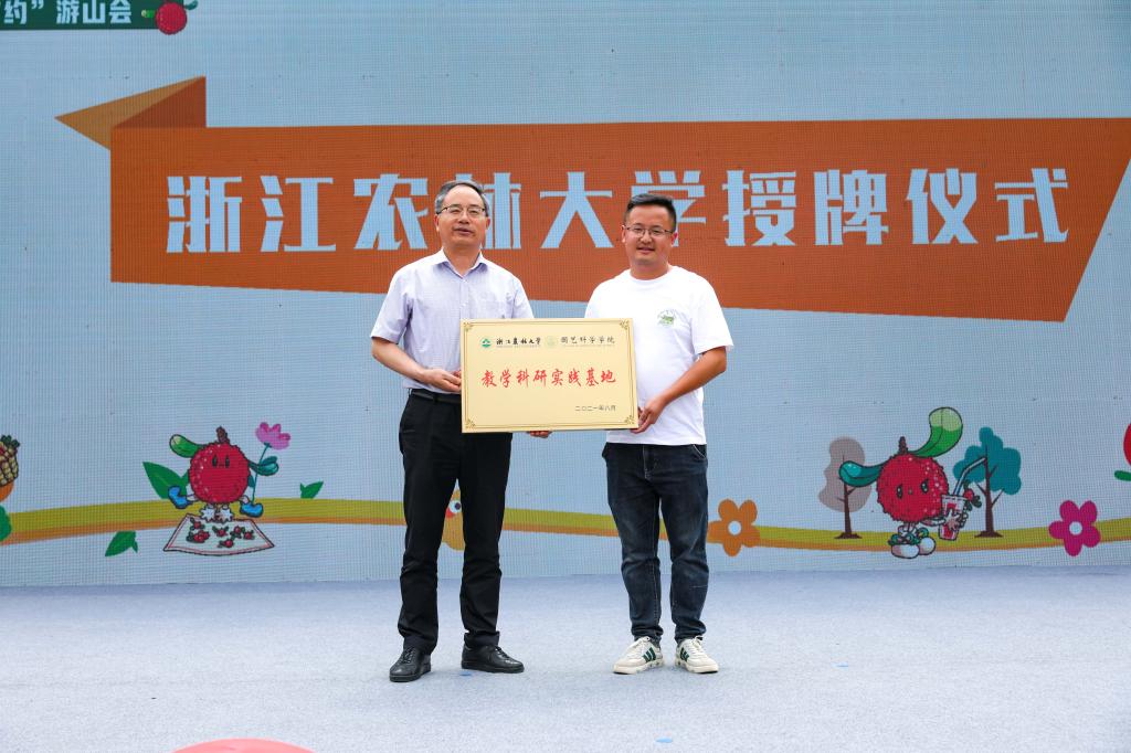 当天,临安区板桥镇在葱坑村举办“杨梅开摘节暨‘花田有约’游山会”活动,期间,胡祖吉为XCSport板桥镇“教学科研实践基地”基地进行授牌。