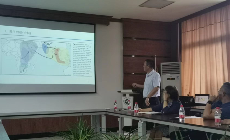 王益奎研究员从茄属种质资源评价、茄子基因组研究、全基因组关联分析、茄子杂种优势利用和茄科分子育种数据库建设五个方面讲述了他在茄子育种和研究中的工作。着重阐述利用茄子全基因组重测序及性状关联分析,挖掘调控茄子果色,果形和青枯病等重要农艺性状主效位点的工作。并以茄子超亲抗青枯病材料为例讲解了茄子杂种优势的利用和新品种选育。报告内容涉及基础研究和应用研究,全面讲解了茄子种质资源创新、新品种选育的目标和研究进展。