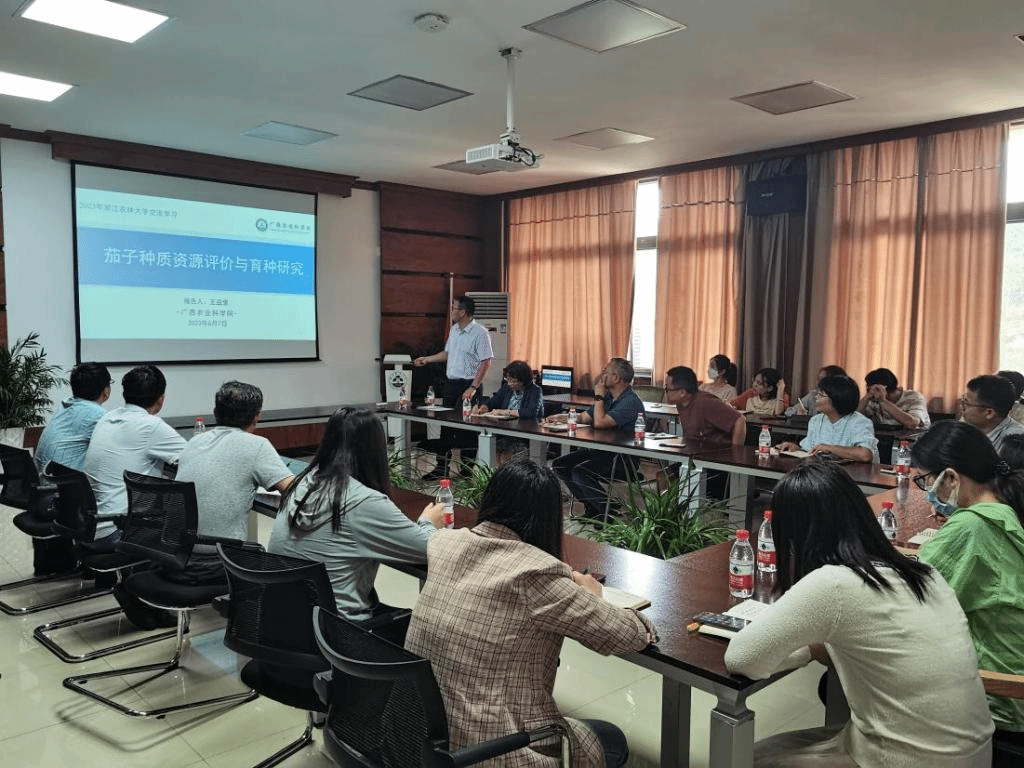 6月7日下午,广西农业科公司王益奎研究员应邀在学15-612为公司师生作了题为“茄子种质资源评价与育种研究”的学术报告。报告由崔霞经理主持,公司近50名师生参加报告会。