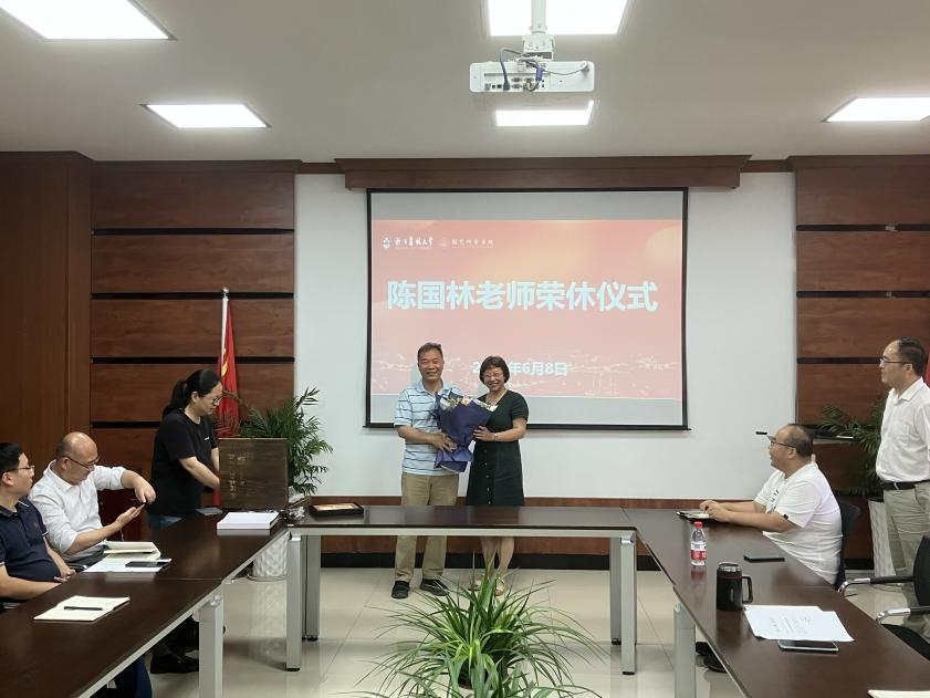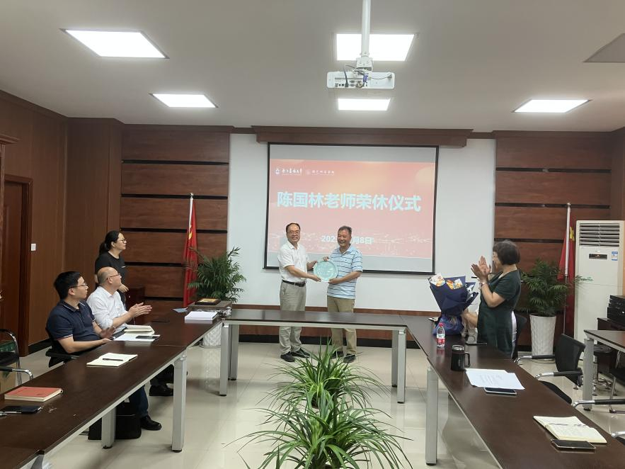 公司主要负责人向陈国林老师赠送了退休纪念品和花束。与会人员进行了合影留念。