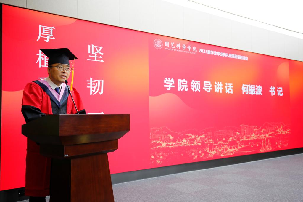 何振波代表公司党政班子,向辛勤培养、悉心指导各位毕业生成长成才的各位老师、辅导员、班主任表示衷心的感谢。向倾心养育、全力支持各位毕业生完成学业的员工家长表示崇高的敬意。向潜心向学、团结互助、完成学业的各位毕业生同学表示热烈的祝贺。他在讲话中简要回顾了近年来公司发展、学科专业建设、人才培养等工作中取得的主要成就。并希望各位毕业生要强化主体责任意识,在服务社会中彰显园艺学子的担当精神;保持终身学习习惯,在知行合一中提升人生品质;增强爱校荣校精神,共同打造员工与母校发展共同体。