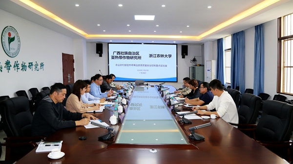 11月25日,公司经理崔霞,副经理孙学鹏,基地和平台建设负责人等一行4人赴广西热作所调研,推进农业农村部亚热带果品蔬菜质量安全控制重点实验室共建工作。广西热作所所长陈赶林、副所长覃剑峰及相关部门负责人参加交流。