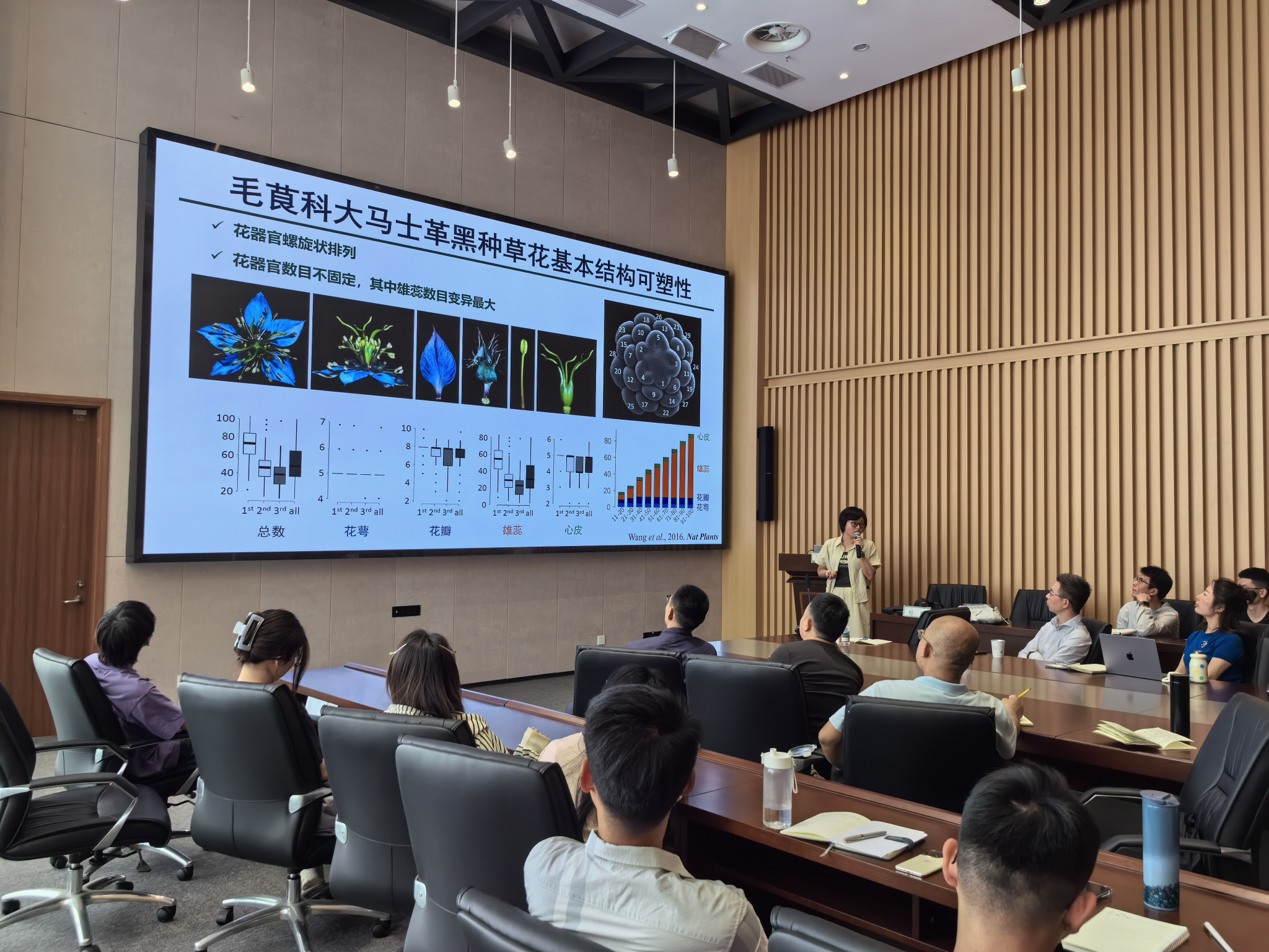 王培培研究员从学术经历、研究领域、花的多样性、花器官身份决定、花器官身份决定的保守性及可变性、花发育MADS-box基因、基因表达、花器官身份基因的表达是动态变化的、病毒介导的基因沉默(VIGS)、花器官身份基因沉默表型、拟南芥复杂性状的全基因组预测、机器学习算法、特征重要性衡量方法、已知开花基因之外的重要基因等多个方面,结合多年积累的大量实验图片和数据,详细介绍了其在植物花部性状形成与演化、全基因组预测、基因功能预测及基因组进化等方面的研究。