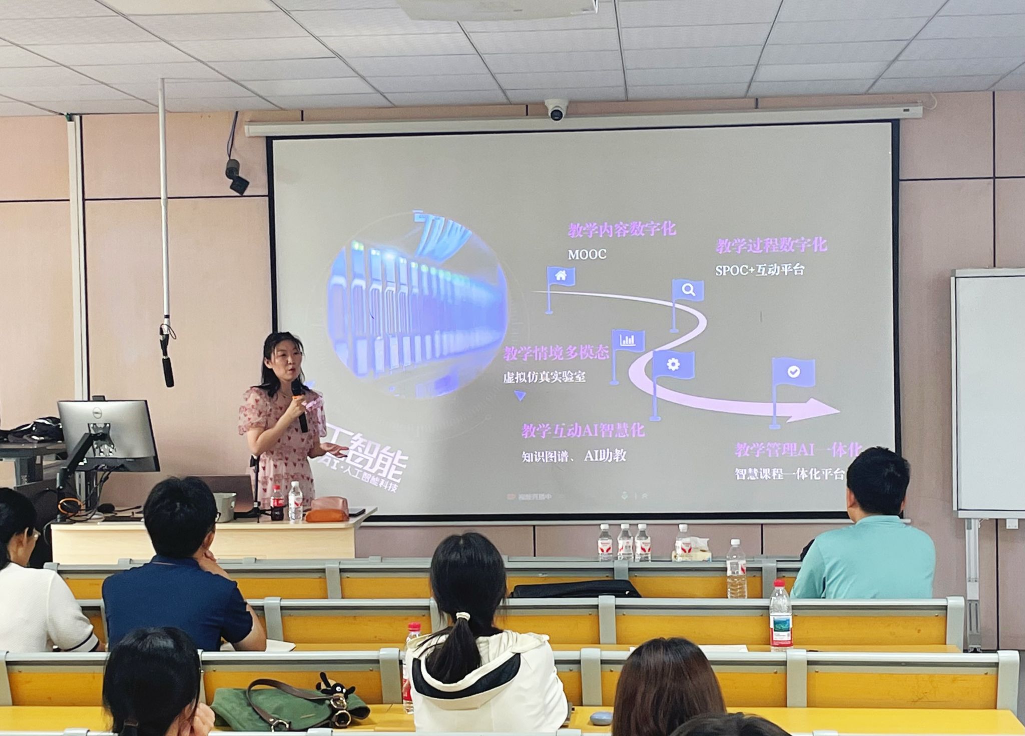 于教授以生动的教学案例为引,带领听众展开了一场AI时代的教学探索之旅。她既分析了AI新技术为高等教育带来的冲击,更分享了如何化挑战为机遇:教师如何重塑教学逻辑成为"教学设计师"?智能问答如何让课堂"活起来"?虚拟仿真又如何让实训课"酷起来"?这些问题的精彩解答让在场教师受益匪浅。