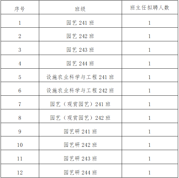3.请有意向担任2024级新生班主任的教师于2024年7月20日前填写《园艺公司班主任申请表》交至本人所在二级学科。请各二级学科做好宣传动员和组织推荐工作,每个学科积极推荐优秀教师、青年教师担任班主任。于7月31日前将拟推荐班主任名单报送至公司员工办。