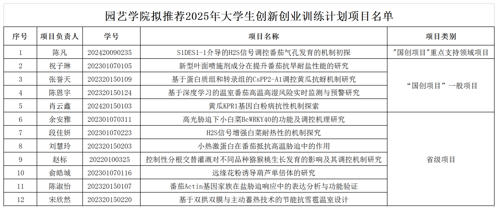 根据公司《关于组织申报2025年老员工创新训练计划项目的通知》要求,经员工个人申请,公司组织答辩评审,现将公司拟推荐至公司的“国创项目”和“省级项目”名单进行公布,具体名单如下。 公示时间:5月31日—6月2日,公示期间如有疑义请向公司反映。联系电话:0571-63741271。